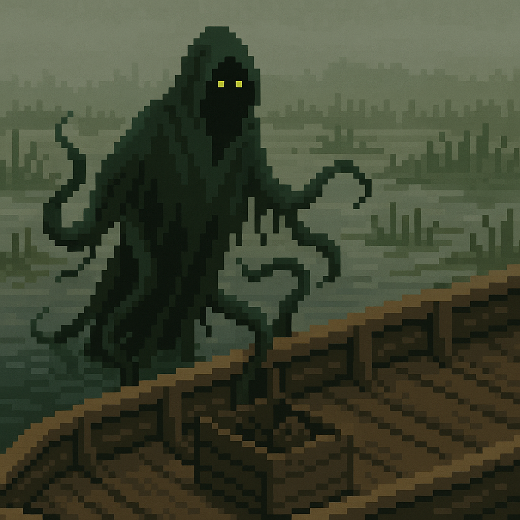 Muck Wraith Amphibious Predator Appearance: A sinewy, amphibious beast rising from the lake. Its body is slick with algae and muck, glowing eyes like twin lanterns in the mist. Its claws are long, spindly, and too many.