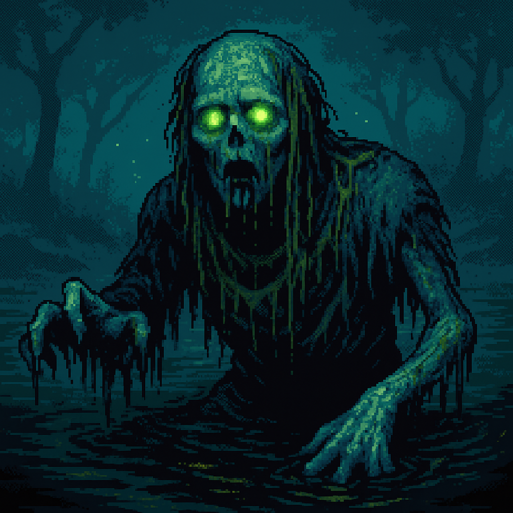 Physical Description: Waterlogged corpses cloaked in tattered remnants of clothing and lakeweed, their skin bloated and split. Eyes glow faint green from within, and their limbs move with eerie, boneless fluidity. Their mouths constantly leak black water.
